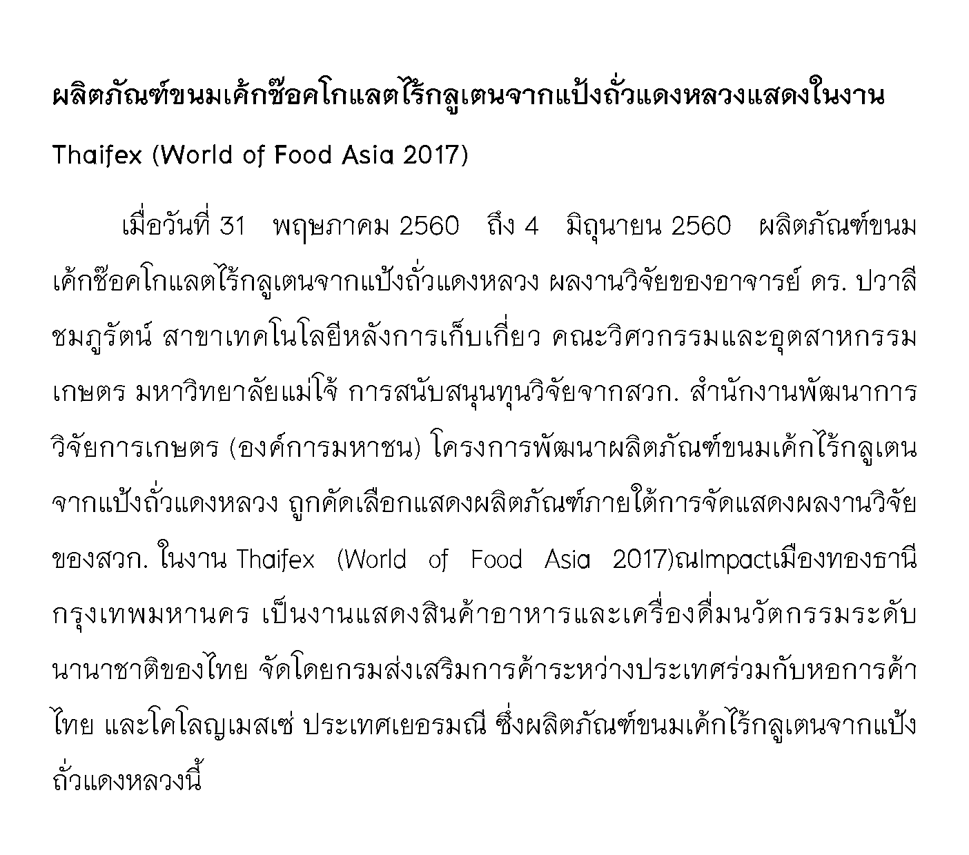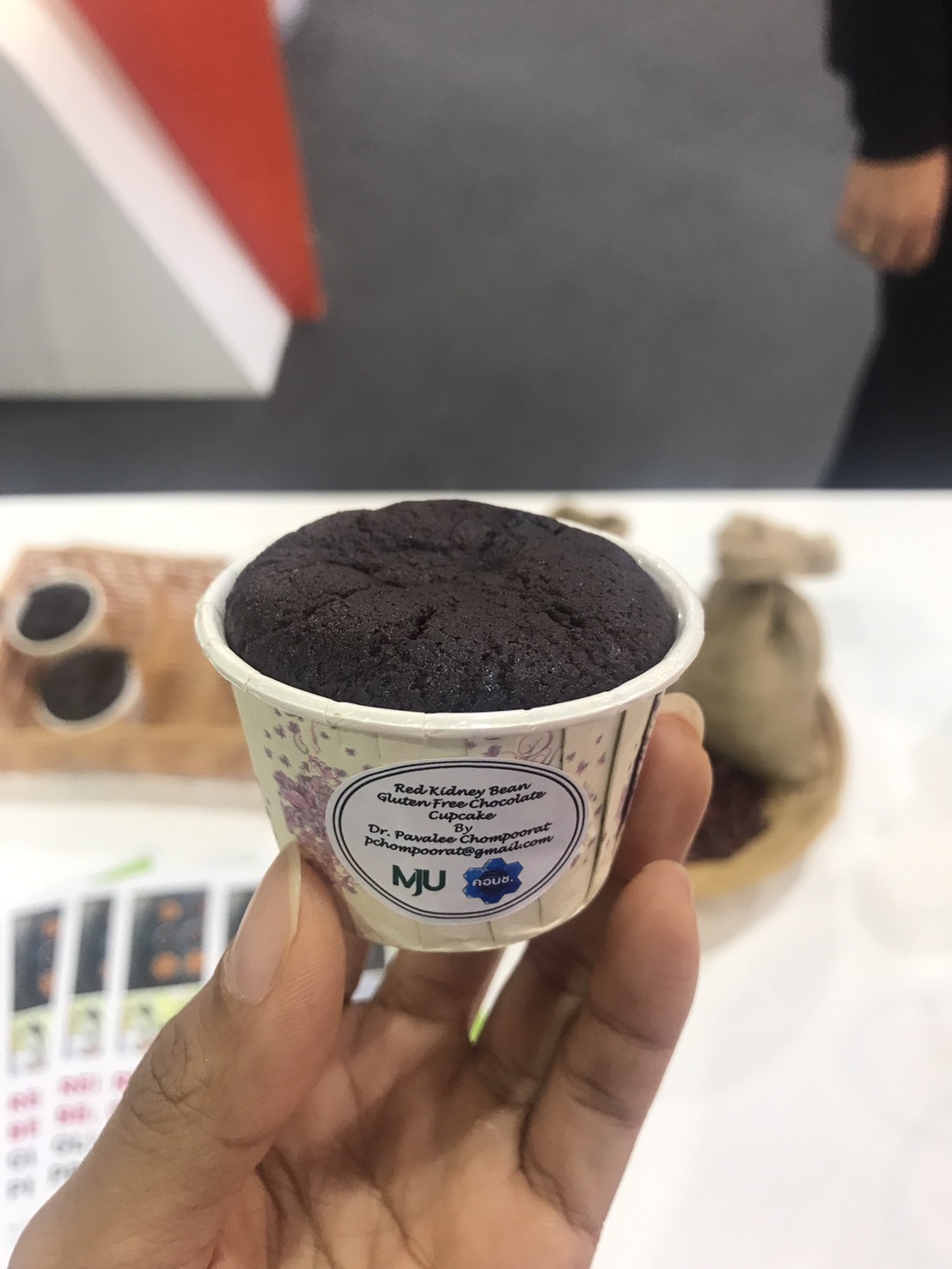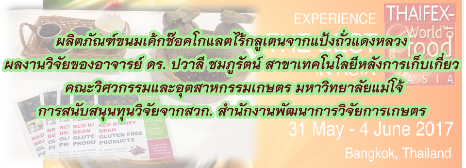 ผลิตภัณฑ์ขนมเค้กช๊อคโกแลตไร้กลูเตนจากแป้งถั่วแดงหลวงแสดงในงาน Thaifex.png